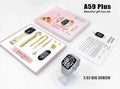 Elevate your style and stay connected effortlessly with the A59 Plus Ladies Smartwatch Set — a 5-in-1 luxury bundle crafted for fashion-forward women who want tech and elegance in one package.