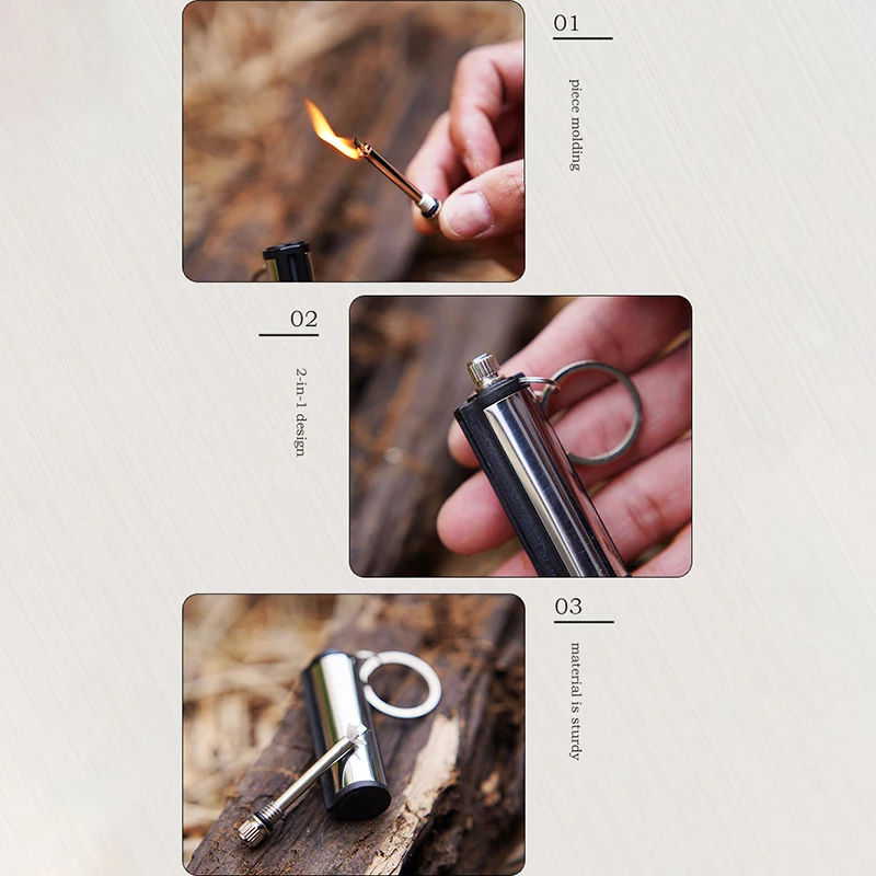 New Portable Metal Waterproof Permanent Lighter Keychain Cotton Core Fire-free Kerosene Gasoline Outdoor Camping Survival Tool